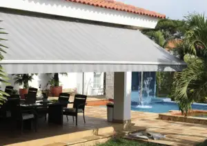 Los tejidos acrílicos son ideales para la fabricación de los toldos de brazos extensibles pues son altamente resistentes a los efectos del sol y por lo tanto no se decoloran de manera prematura.