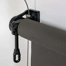 Los mecanismos en acero colado son un sistema de sujeción robusto, ideal para toldos grandes y aptos para intemperie. Están disponibles en color blanco, gris y negro.